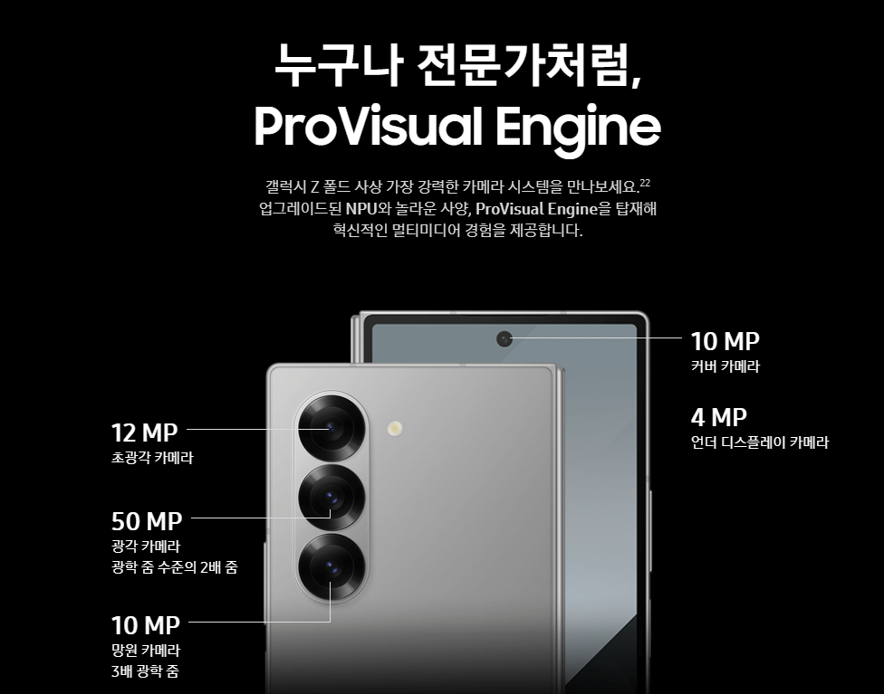 ● 카메라: 폴드 6의 카메라 시스템은 폴드 5와 유사하지만, 소프트웨어 최적화를 통해 더 나은 사진 품질을 제공합니다.