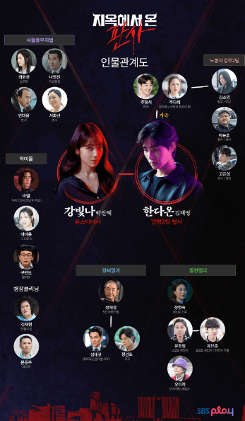 ● 강빛나(박신혜): 본래 지옥의 재판관이었으나, 인간 세상에서 판사로 활동하게 된 악마입니다. 그녀는 지옥의 심판을 위해 죄인들을 의도적으로 처벌하지 않으며, 이를 지켜보는 한다온 형사의 추적을 받게 됩니다.